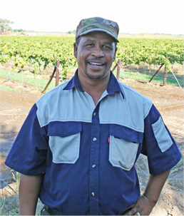 “I was sixteen at the time and had the idea that I would like to go to the army. Finally, I landed a job as a gardener here in Mr Steyn’s garden. I worked there for a few months and then Mr Steyn told me that he had a plan in mind for my future. He sent me on a supervisor course as well as an advanced supervisor course. Towards the end of the year, I was appointed as an assistant supervisor on the farm and held that post from 1993 until 2005. The farm produces table grapes, raisins and wine and at that stage had approximately 60ha under cultivation. In 2005 I was appointed as junior production manager and for the 2006 harvest we prepared the Thompson Seedless grapes that we usually harvested as raisins for table grape production. This was an interesting and very challenging experience as there was a great deal to learn about practices and standards for table grape production and we needed to learn this within one season. In 2006 I was appointed as the overall production manager on the property, as well as packhouse manager and this was a huge responsibility. I remember telling Mr Steyn at that time that I thought I was going to become prematurely grey! At this stage we farmed only on the alluvial soils here on the island. In 2006 Mr Steyn bought additional property, desert soils beyond the river’s flood plain and we have since planted a further 7ha on this new property.