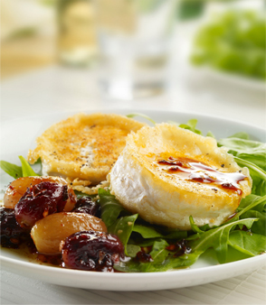 4. To serve, place the goats’ cheese rounds into the centre of a plate.